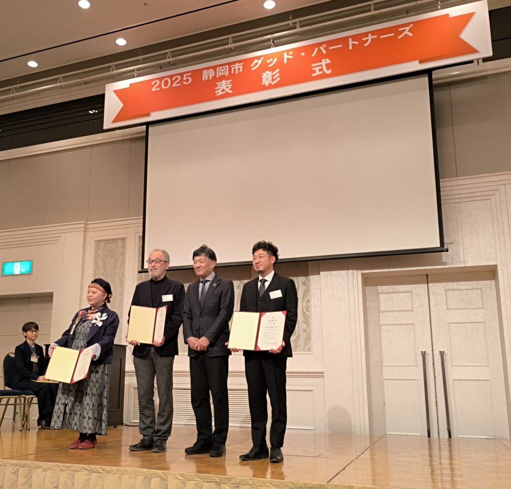 2026年1月30日に開催された、地域で躍進する企業・団体が一堂に会する合同表彰式「2025静岡市グッド・パートナーズ表彰式」にて、SDGsチャレンジ連携アワード部門で土木工学科の居波准教授が代表を務める団体“麻機遊水地ネイチャーポジティブ産官学民連携チーム”がユース賞を受賞し、難波市長から表彰されました。